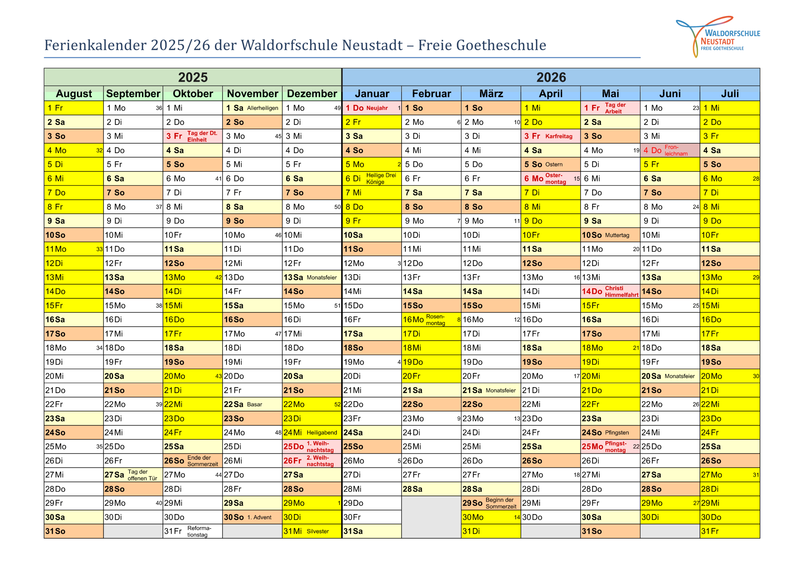 Ferien und Termine für das Schuljahr 2025/2026 auf einen Blick